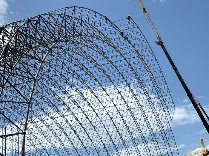 (2)网架加工前应对现场尺寸进行复测,确认无误后方可进行加工、安装;网架制作、运输、安装应遵守《空间网格结构技术规程》JGJ7-2010、《钢网架永州螺栓球节点》JG/T 10-2009、《钢网架永州螺栓球节点用高强度螺栓》 GB/T 16939-2016、《永州钢结构永州工程永州施工规范》 GB50755-2012、《永州钢结构永州工程施工质量验收标准》 GB50205-2020。